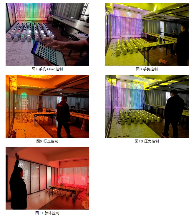 要實(shí)現(xiàn)智能互動的光影藝術(shù),就必須滿足三個基本條件:一是智能燈具(即互動裝置),二是智能控制,三是后臺系統(tǒng)。智能燈具的各種創(chuàng)意組合構(gòu)成互動裝置,該裝置必須能在接受不同的信號指令而實(shí)現(xiàn)相關(guān)的動作(如下圖3-11);智能控制必須能接受游客的各種指令而驅(qū)動對應(yīng)的智能燈具,從而讓智能燈具及其裝置與游客的各項(xiàng)指令產(chǎn)生互動,滿足游客的體驗(yàn)需求,甚至以某種獎勵機(jī)制加強(qiáng)裝置與游客的粘性;后臺系統(tǒng)則是實(shí)現(xiàn)商業(yè)目的的核心,如何通過游客的互動體驗(yàn)轉(zhuǎn)化為即時消費(fèi),通過后臺系統(tǒng)進(jìn)行收益分配。