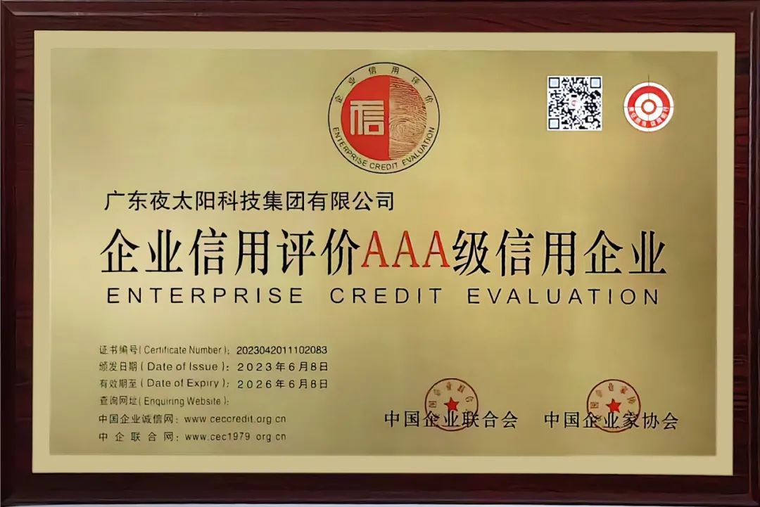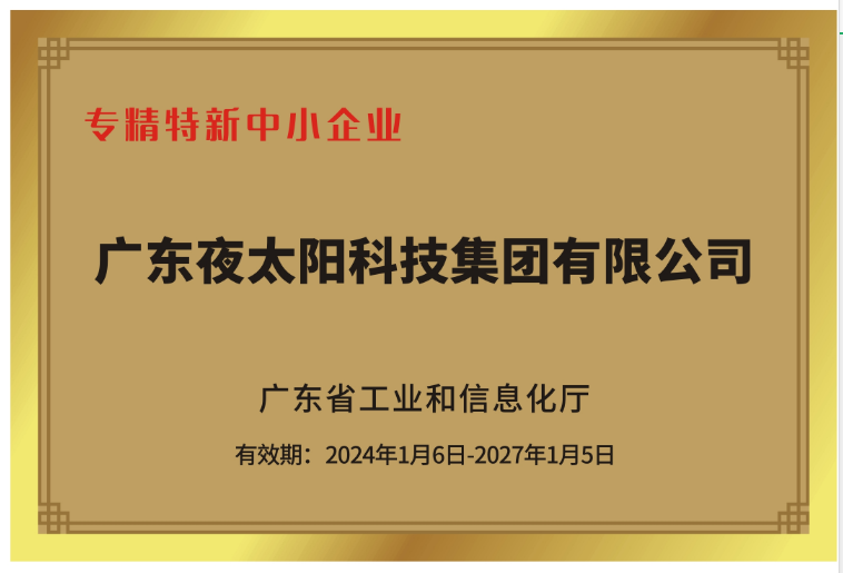 2022年,“專精特新”這個詞首次出現(xiàn)在政府工作報告中,由此便可以看出國家對這一政策的扶持和看重。獲得“專精特新中小認定”對于企業(yè)的發(fā)展具有重要的戰(zhàn)略意義,包括:政府政策扶持、資金獎勵、企業(yè)信用等級、企業(yè)形象、融資能力、 吸引優(yōu)秀人才,增強創(chuàng)新能力等方面。12月,夜太陽順利通過“廣東省專精特新中小企業(yè)”評定,也是2023里程碑式的經(jīng)營成績。