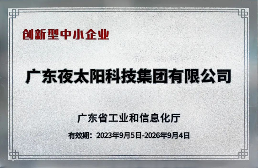8月,廣東省工業(yè)化和信息化廳發(fā)布了2023上半年創(chuàng)新型中小企業(yè)名單,經(jīng)過企業(yè)自評、地市審核、抽查等程序,夜太陽在數(shù)以萬計家企業(yè)脫穎而出,成為7380家通過認定的企業(yè)之一。