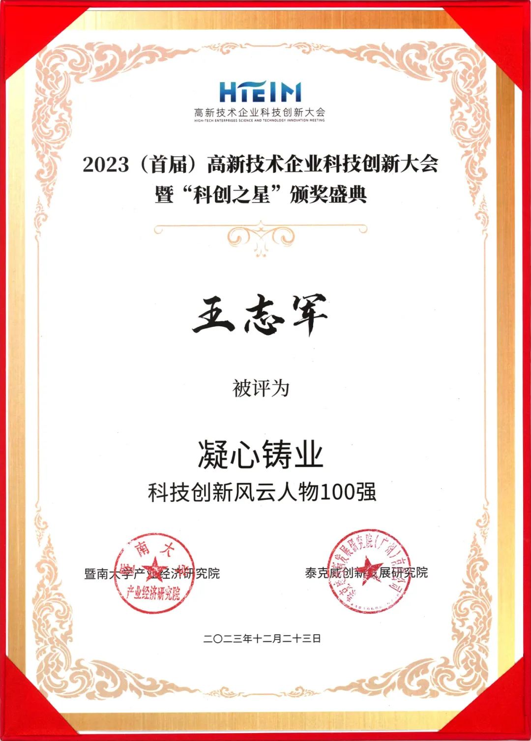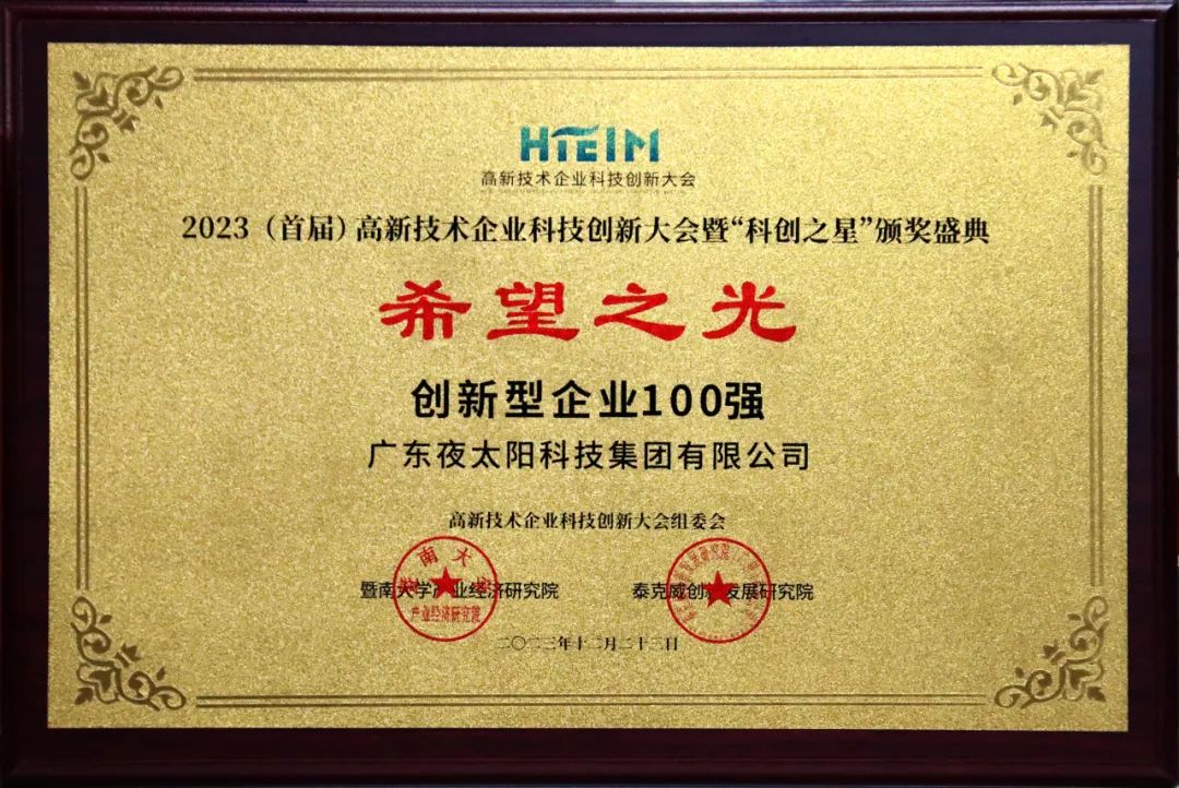 12月,由中國科協(xié)企業(yè)創(chuàng)新服務中心、中國創(chuàng)新創(chuàng)業(yè)成果交易會辦公室指導,暨南大學主辦,暨南大學產(chǎn)業(yè)經(jīng)濟研究院、暨南大學創(chuàng)業(yè)學院、泰克威創(chuàng)新發(fā)展研究院承辦的2023(首屆)高新技術企業(yè)科技創(chuàng)新大會暨“科創(chuàng)之星”頒獎盛典在暨南大學隆重召開!夜太陽榮獲2023年科創(chuàng)之星"希望之光"創(chuàng)新型企業(yè)100強、王志軍總經(jīng)理獲得2023 年科創(chuàng)之星“凝心鑄業(yè)”科技創(chuàng)新風云人物100強稱號!