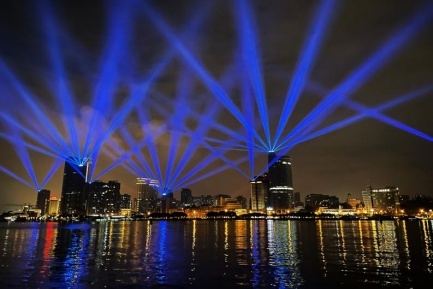 燈光匯演連續(xù)8天,每晚5場。由廣東夜太陽科技集團提供的100多臺大功率戶外防水光束燈,為整個燈光秀埋下點睛之筆,照亮鷺江兩岸,光束一直延伸到3000米高的頂端,滿足了人們對于視聽體驗的高要求。流光溢彩的夜景,為整個“鷺飛花舞,百年歡慶”主題燈光秀添加了濃厚的藝術光影。